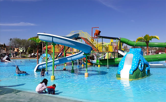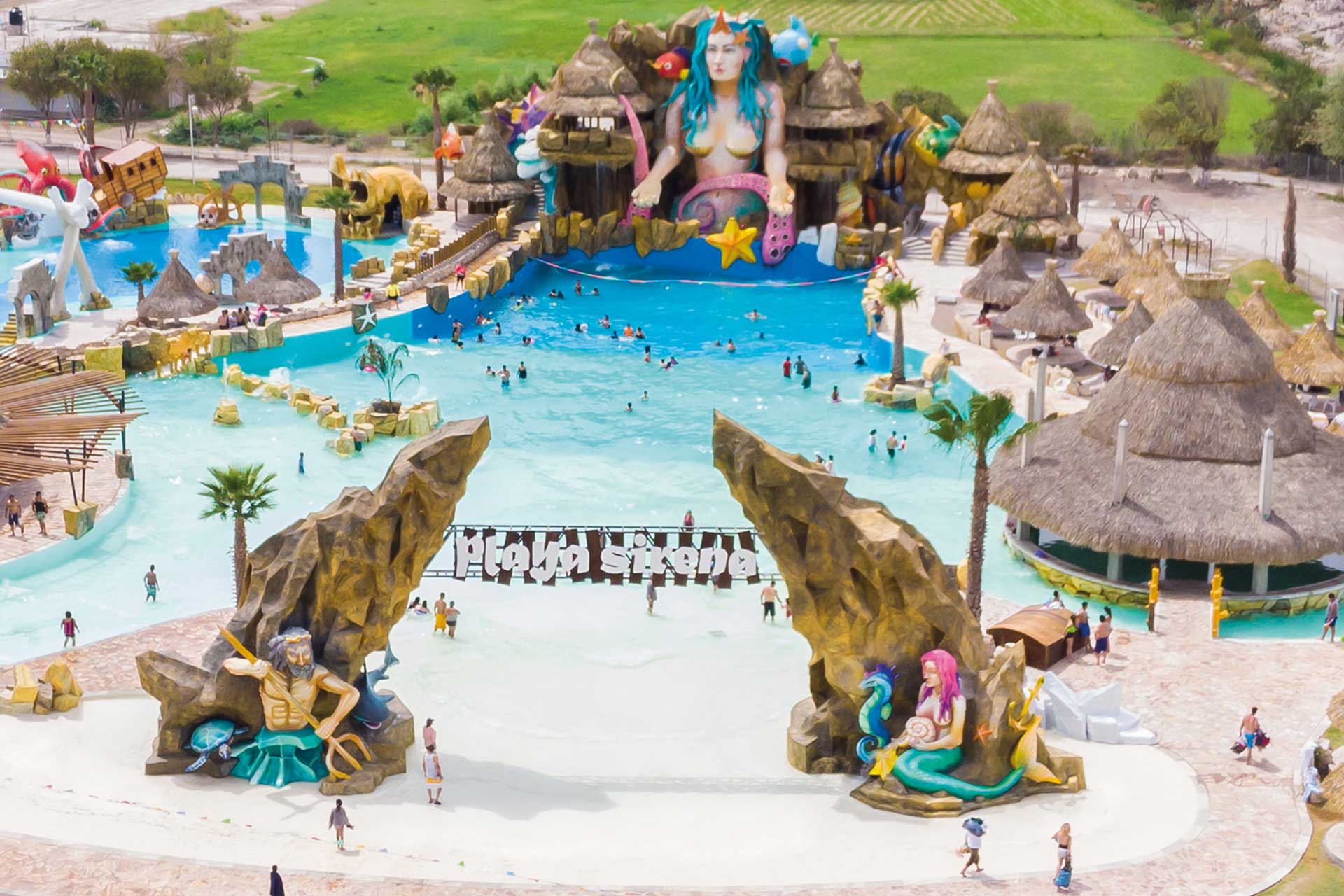 La estructura más llamativa se llama Playa Sirena, su nombre lo tiene gracias a la estructura gigante de una sirena que funciona como ícono del lugar, es una alberca de olas con capacidad para 1,200 personas, así que imagina lo grande que es, la temperatura del agua es de 24 grados centígrados por lo que es ideal incluso en invierno