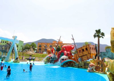 Por su parte, el área infantil es el rincón ideal del que no querrán salir los más pequeños, pues tiene una superficie de 2500 metros cuadrados, profundidad de 40 centímetros y el agua termal está a una temperatura de 25 °C.