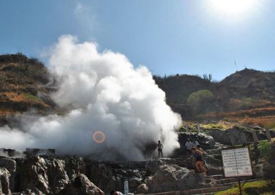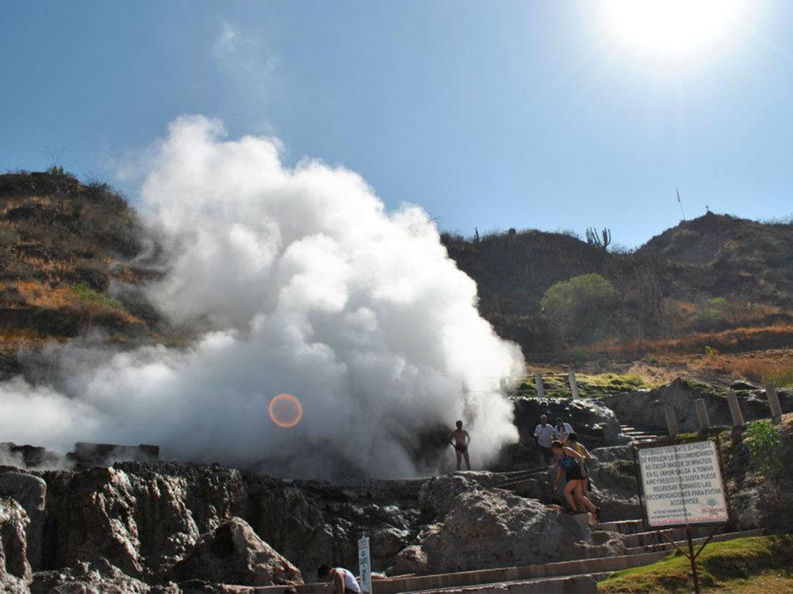Balneario El Geiser es uno de los respiraderos de volcán más impresionantes de Latinoamérica, Ubicado en Tecozautla, uno de los cinco Pueblos Mágicos de Hidalgo, donde las curativas aguas termales de 95°C que emanan en medio de los cerros alimentan pozas, chapoteaderos y piscinas las cuales son ideales para relajarte con su vapor como sauna natural ya sea en el día o por la noche.